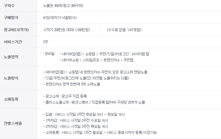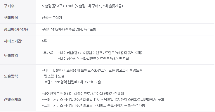 - * 본 광고는 전주 구매자 우선순위가 없습니다. 대상광고주는 모두 4주단위로 쇼핑광고센터에서 선착순으로 직접 구매 할 수 있습니다.