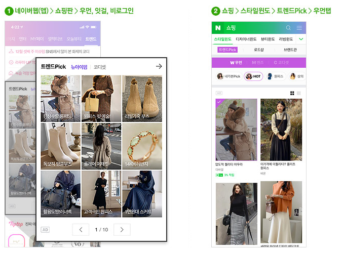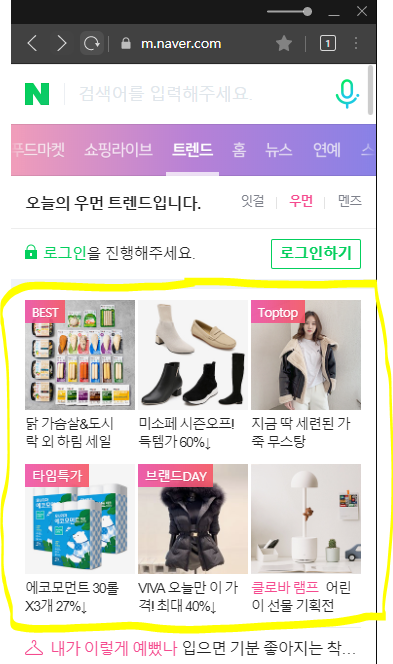 위의 트렌드 상단 6개 썸네일은 광고구좌가 아닌